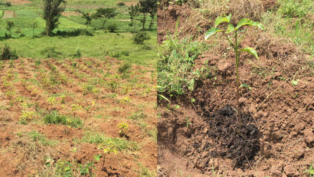 The leaves of young coffee have turned yellow showing the sign of nutrition shortage. We did weeding and applied manure to make them recover as soon as possible.
